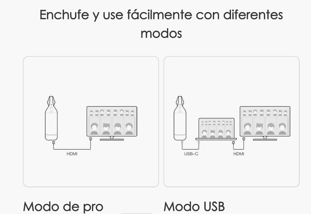 El Modo USB le permitirá conectar su computadora al AI360 PRO, para usarlo como un sistema tradicional de videoconferencias.