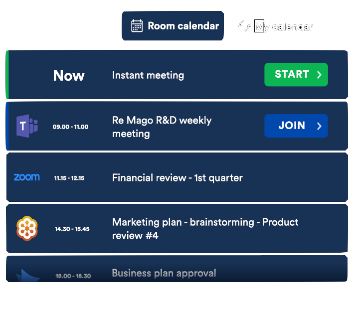Con demasiada frecuencia, los usuarios de las salas de reuniones experimentan desafíos que generan frustración, menor productividad y menor eficiencia. Mago Room garantiza que la experiencia de usuario sea agradable y fácil de aprovechar la tecnología que está a su disposición.